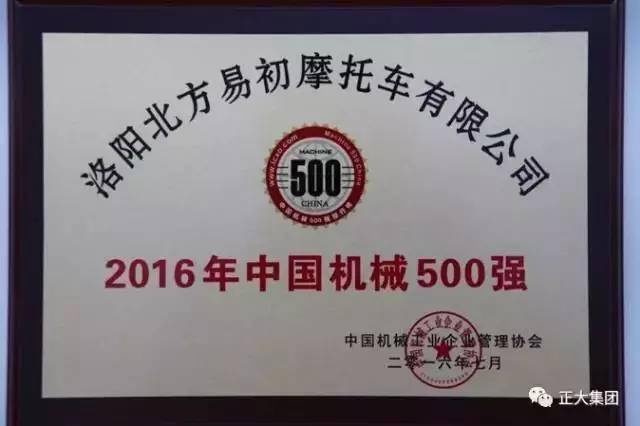 ▲洛陽(yáng)北易入圍2016年中國機械500強